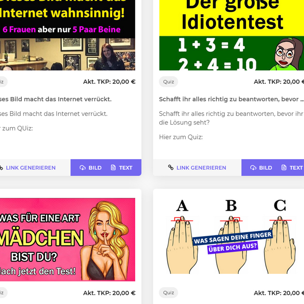 Im Dashboard werden besondere Beiträge, die sich durch hohe TKPs oder starke Reichweite auszeichnen, angezeigt. Durch ständige Wechsel der Beiträge im Dashboard werden Sie immer in der Lage sein, den passenden Beitrag für Ihre Fanseiten zu finden.