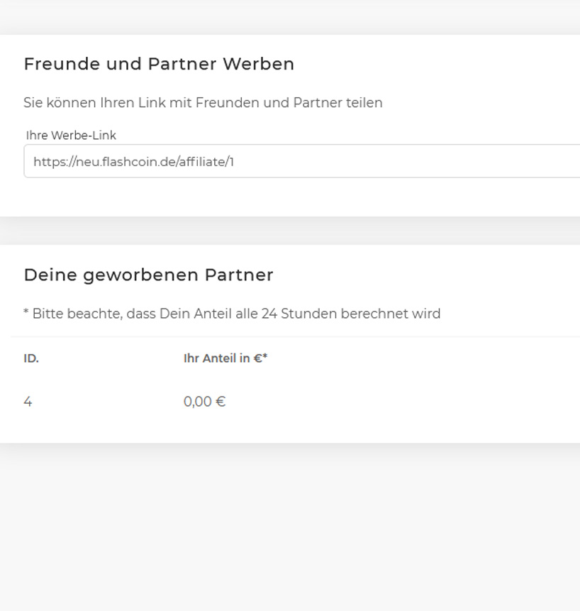 Werben Sie weitere Partner für Flashcoin und verdinen sie 6 % an dem Geworbenen Partner.