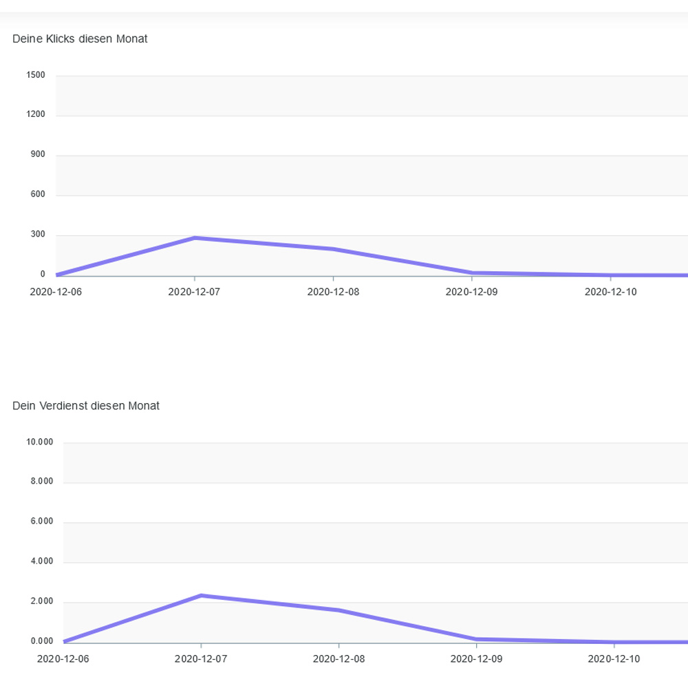 Ihre Einnahmen können Sie mit detaillierten Statistiken nachvollziehen. Mit unseren Livestatistiken sehen Sie jeden Klick, der durch Ihre Seiten generiert wird.